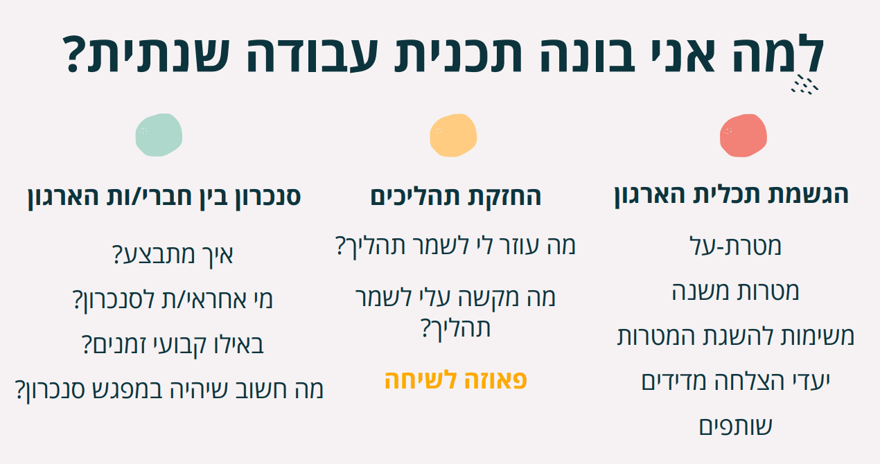 למה אני בונה תכנית עבודה שנתית | מתוך: מצגת ההכשרה